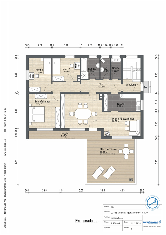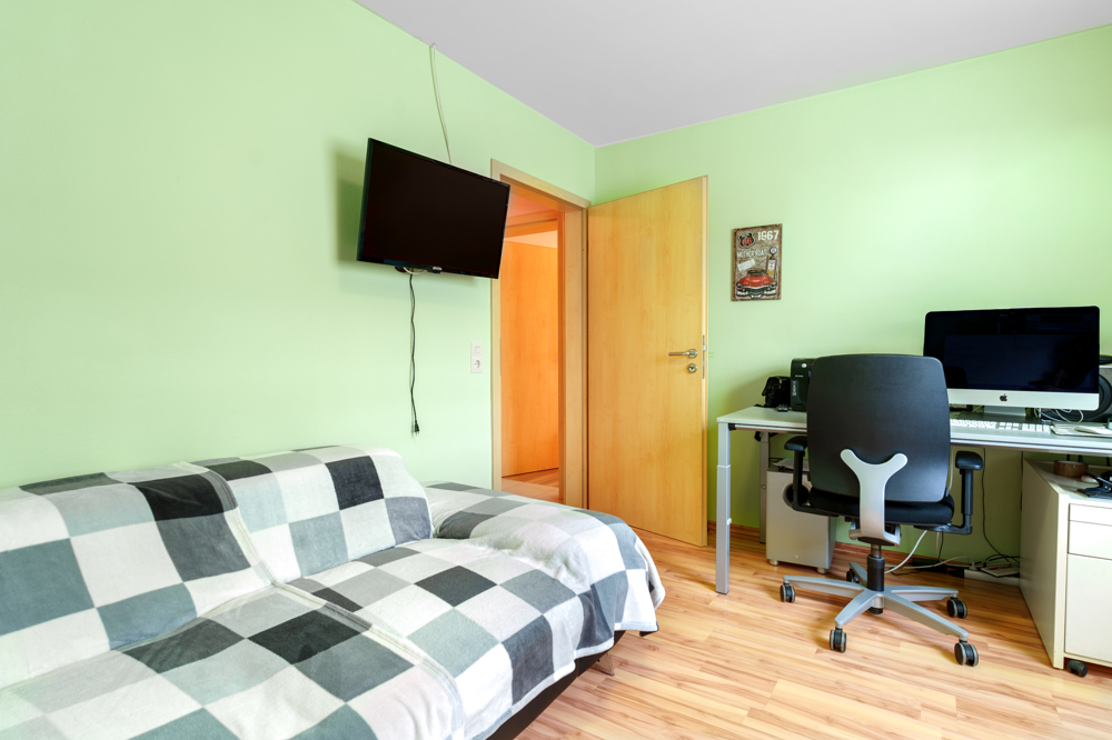 Weiterhin stehen im Erdgeschoss ein Schlafzimmer mit ca. 17,37 m² sowie zwei zusätzliche flexibel nutzbare Zimmer mit ca. 12,29 m² und ca. 10,04 m² zur Verfügung, die sich ideal als Kinder-, Gäste- oder Arbeitszimmer eignen.