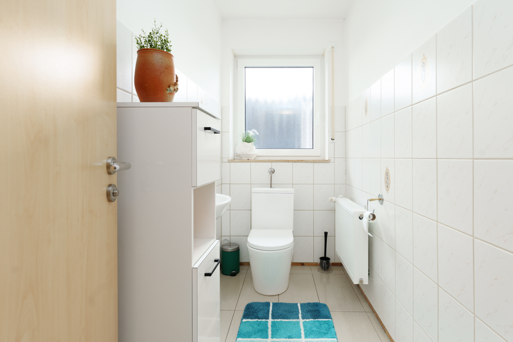 Abgerundet wird diese Ebene durch ein Tageslichtbad mit ca. 6,23 m², ausgestattet mit Badewanne, Dusche, Waschbecken und Waschmaschinenanschluss, sowie ein separates Tageslicht-Gäste-WC mit ca. 3,32 m².
