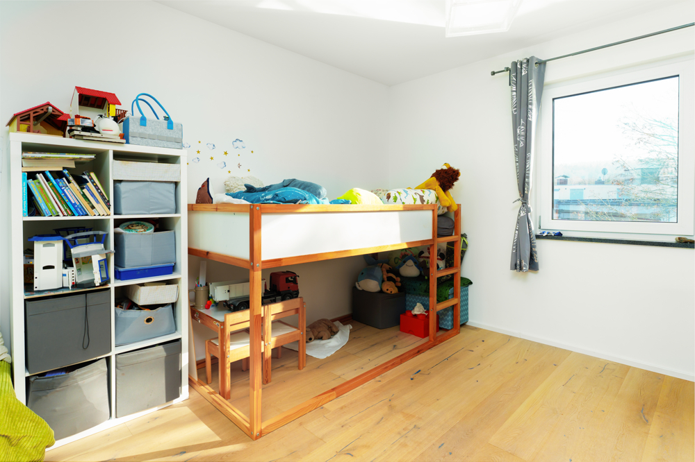 Zwei nahezu gleich große Kinderzimmer mit ca. 14,31 m² und 14,41 m² bieten viel Platz zum Spielen, Lernen und Wohlfühlen. Beide Räume punkten mit harmonischen Grundrissen und angenehmer Helligkeit.