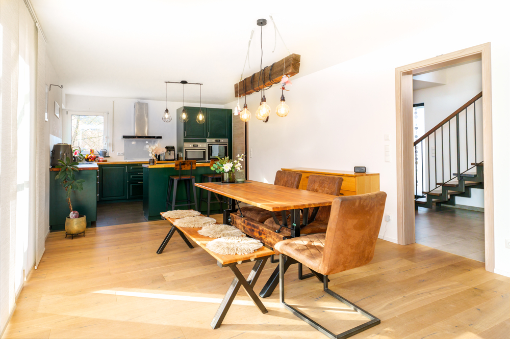 Dieses moderne Einfamilienhaus begeistert bereits auf den ersten Blick mit seiner klaren Architektur und einer einladenden, warmen Ausstrahlung. Innen setzt sich dieser Eindruck nahtlos fort: Ein durchdachter, funktionaler Grundriss schafft helle, offene Räume und bietet zugleich genügend Rückzugsmöglichkeiten für das tägliche Familienleben. Die gemütliche Wohnatmosphäre wird durch hochwertige Ausstattungsdetails und eine harmonische Raumgestaltung unterstrichen.