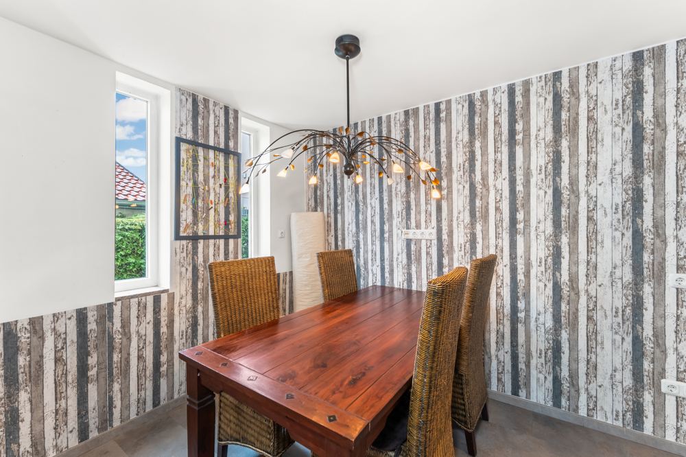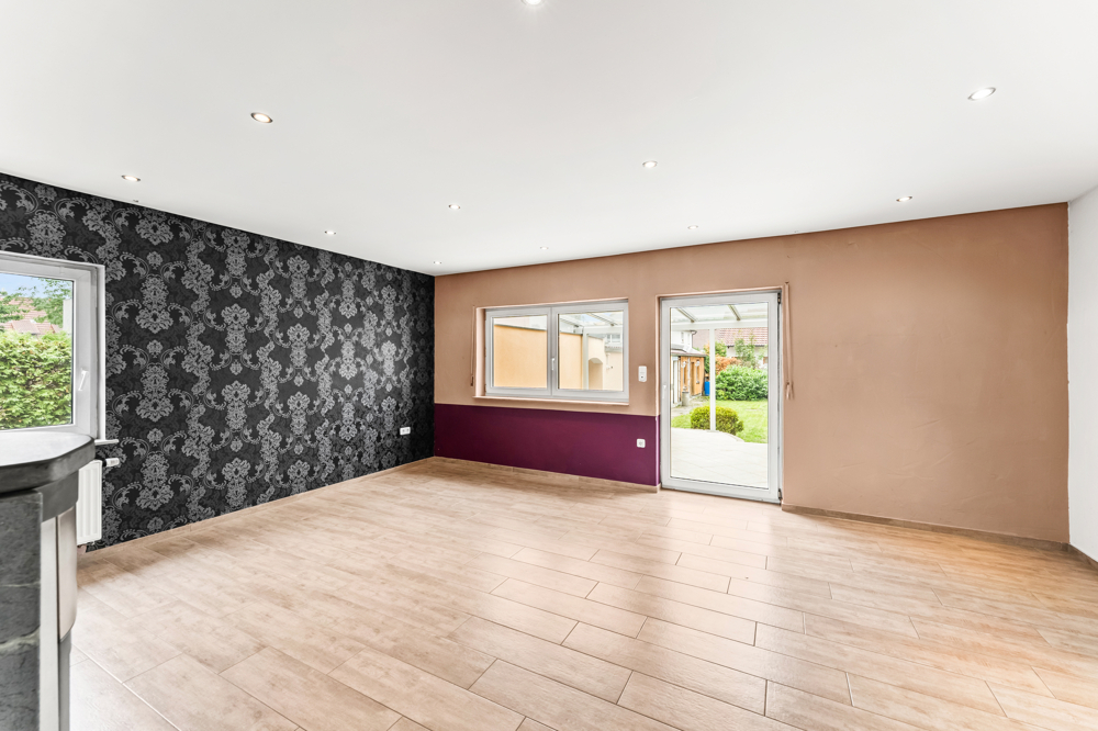 Über den einladenden Flur mit ca. 6,16 m² gelangen Sie in den hellen und großzügig geschnittenen Wohnbereich mit ca. 27,06 m². Große Fensterflächen und der direkte Zugang zur ca. 20,34 m² großen, überdachten Terrasse sowie zum Garten schaffen eine angenehme Verbindung nach draußen – ideal für entspannte Nachmittage oder gesellige Stunden im Freien.