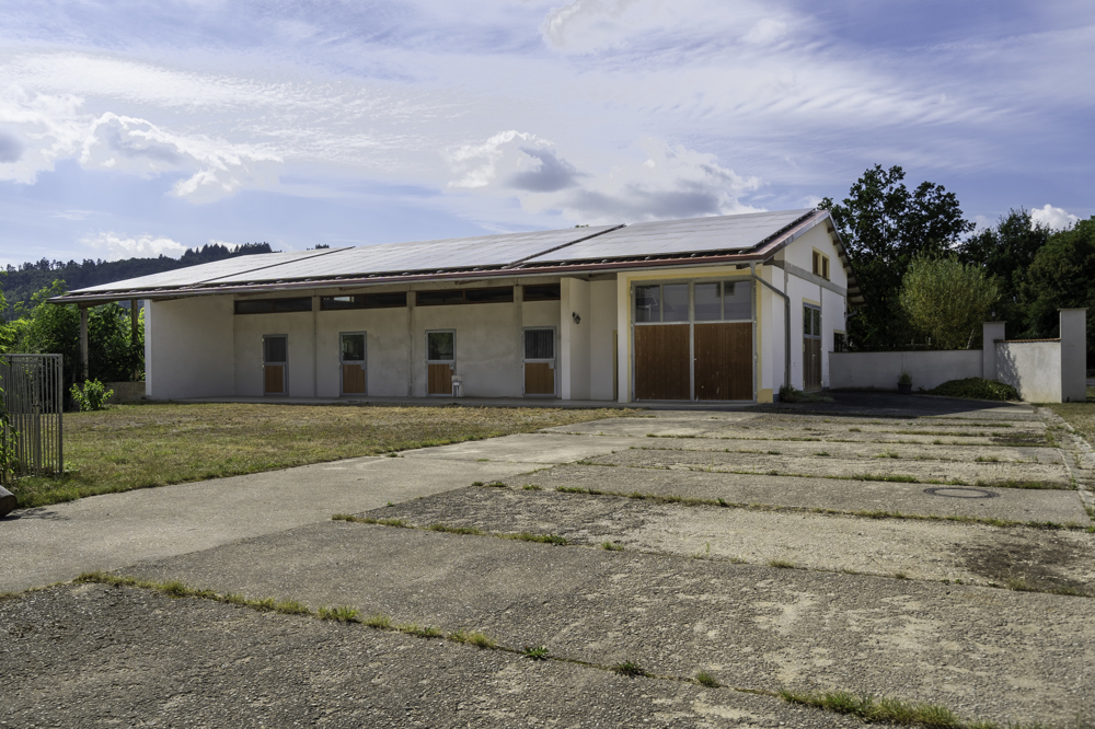 Das ehemalige Sägewerk wurde umgebaut und kann flexibel als Reithalle, Werkstatt oder Lagerhalle genutzt werden.