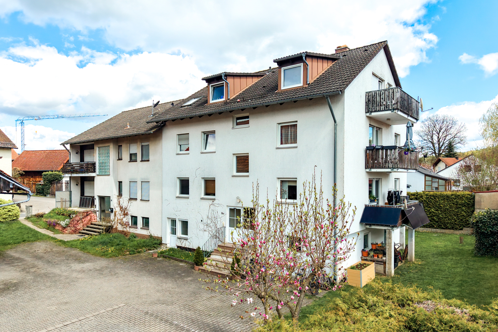 Das Mehrfamilienhaus aus dem Jahr 1992 umfasst insgesamt drei Wohneinheiten. Zwei der Wohnungen befinden sich im Erd- und Obergeschoss und sind nahezu identisch geschnitten. Sie bieten jeweils vier Zimmer bei einer Wohnfläche von ca. 92 m².